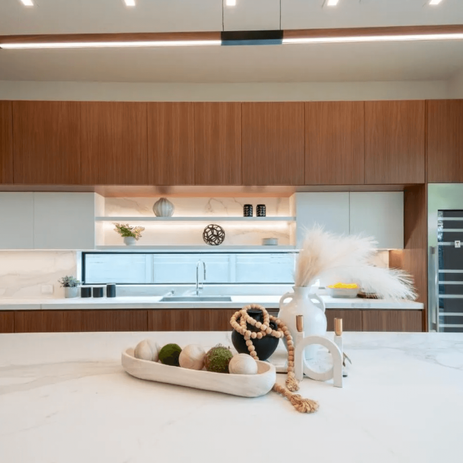 In addition, I fully designed the kitchen — from the functional layout to the finishes — and created a custom fireplace design that anchors the living space with quiet elegance and character.